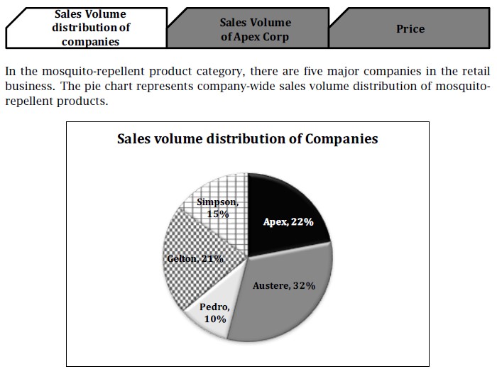 Doanh số bán ra sản phẩm Gel của Công ty Apex là 170,000. Số phần trăm doanh số bán ra của Công ty Apex là 22% trên tổng năm công ty, trong khi Pedro là 10%. Có thể dễ dàng thấy, doanh số bán ra của sản phẩm Gel của Công ty Pedro là